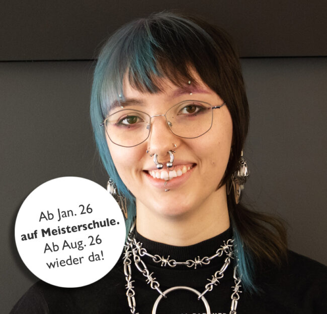 KatyJungstylistin, 2. Ausbildungsjahr Ich mag meinen Beruf, weil man ihn überall machen kann. Es wird ihn auch noch lange geben. Mein Spezialgebiet im Schnitt-Punkt ist Kopfmassage und die Haarwäsche nach dem Färben. Ich mag meine Kunden, weil sie respektvoll und freundlich sind. Ich mag den Schnitt-Punkt, weil die Atmosphäre angenehm ist mit den ganzen freundlichen…